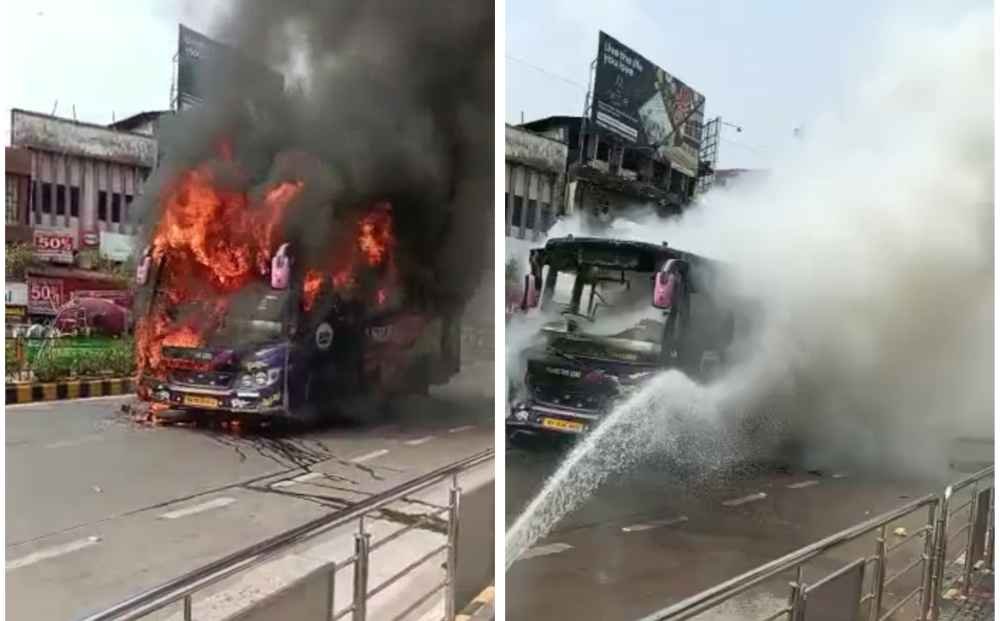 ಗಣೇಶಪುರ ಕೈಕಂಬ ದಿಂದ ಸ್ಟೇಟ್ ಬ್ಯಾಂಕ್ ಗೆ ಸಂಚರಿಸುವ ೪೫ಜಿ ಆಶೆಲ್ ಬಸ್ ಗೆ ಬೈಕ್ ಒಂದು ಅಡ್ಡ ಬಂದು ಬಿದ್ದ ಪರಿಣಾಮ ಬೈಕ್ ಬಸ್ಸಿನ ಟೈರಿನ ಅಡಿಗೆ ಸಿಲುಕಿದೆ. ಆ ಘರ್ಷಣೆಯಲ್ಲಿ ಬೆಂಕಿ ಹತ್ತಿಕೊಂಡಿದ್ದು ಮೊದಲಿಗೆ ಬಸ್ಸಿನ ಟೈರು ಉರಿಯತೊಡಗಿದ್ದು ನೋಡ ನೋಡುತ್ತಿದ್ದಂತೆ ಬೆಂಕಿ ಬಸ್ಸಿಗೆ ವ್ಯಾಪಿಸಿದೆ. ಆ ವೇಳೆ ಬಸ್ಸಿನಲ್ಲಿದ್ದ ೧೫ಕ್ಕೂ ಅಧಿಕ ಪ್ರಯಾಣಿಕರನ್ನು ಕೆಳಗಿಸಿ ಸಂಭಾವ್ಯ ಅಪಾಯದಿಂದ ತಪ್ಪಿಸಲಾಗಿದೆ.