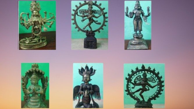 ರಾಮನಾಥಪುರಂ: ತಮಿಳುನಾಡಿನ ರಾಮನಾಥಪುರಂನಲ್ಲಿ 5 ಕೋಟಿ ರೂ.ಗೂ ಹೆಚ್ಚು ಮೌಲ್ಯದ ಪುರಾತನ ವಿಗ್ರಹಗಳನ್ನು ಮಾರಾಟ ಮಾಡಲು ಯತ್ನಿಸಿದ ತಮಿಳುನಾಡು ಬಿಜೆಪಿ ಅಲ್ಪಸಂಖ್ಯಾತ ವಿಭಾಗದ ಜಿಲ್ಲಾ ಕಾರ್ಯದರ್ಶಿ ಮತ್ತು ಇಬ್ಬರು ಪೊಲೀಸರನ್ನು ಬಂಧಿಸಲಾಗಿದೆ. ಒಟ್ಟು ಏಳು ಹಿಂದೂ ದೇವತೆಗಳ ವಿಗ್ರಹಗಳನ್ನು ವಶಪಡಿಸಿಕೊಳ್ಳಲಾಗಿದೆ.