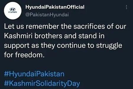 ಹುಂಡೈ ಕಾರು ಕಂಪನಿಯ ಪಾಕಿಸ್ತಾನ ಘಟಕ ತನ್ನ ಟ್ವೀಟರ್ ಅಧಿಕೃತ ಖಾತೆಯಲ್ಲಿ ”ನಮ್ಮ ಕಾಶ್ಮೀರಿ ಸಹೋದರರ ತ್ಯಾಗವನ್ನು ನೆನಪಿಸಿಕೊಳ್ಳಬೇಕಾಗಿದೆ. ಕಾಶ್ಮೀರಿ ಜನರ ಸ್ವಾತಂತ್ರ್ಯ ಹೋರಾಟಕ್ಕೆ ಬೆಂಬಲ ನೀಡಬೇಕಾಗಿದೆ” ಎಂದು ಟ್ವೀಟ್ ಮಾಡಿದೆ. ಕಾಶ್ಮೀರ ವಿಚಾರದಲ್ಲಿ ಮೂಗು ತೂರಿಸಿದ ಹುಂಡೈ ಕಂಪನಿಯನ್ನು ಬಹಿಷ್ಕರಿಸುವಂತೆ ಟ್ವೀಟರ್ ನಲ್ಲಿ ಟ್ರೆಂಡಿಂಗ್ ಆಗುತ್ತಿದೆ. ಹುಂಡೈ ಕಂಪನಿಯ ಕಾರುಗಳನ್ನು ಖರೀದಿಸುವುದನ್ನು ನಿಲ್ಲಿಸುವಂತೆ ಟ್ವೀಟರ್ ಬಳಕೆದಾರರು ಮನವಿ ಮಾಡುತ್ತಿದ್ದಾರೆ.
