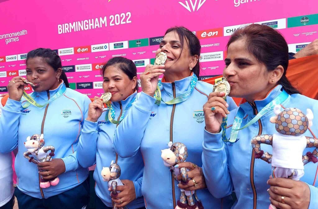ಬರ್ಮಿಂಗ್ಹ್ಯಾಮ್: 2022ರ ಕಾಮನ್ವೆಲ್ತ್ ಗೇಮ್ಸ್ ನಲ್ಲಿ ಭಾರತದ ಪದಕ ಲೂಟಿ ಮುಂದುವರೆದಿದ್ದು, ಐದನೇ ದಿನವಾದ ಮಂಗಳವಾರ ಅಪರೂಪದ ಕ್ರೀಡೆ ಲಾನ್ ಬೌಲ್ಸ್ ಕ್ರೀಡೆಯಲ್ಲಿ ಇತಿಹಾಸ ಬರೆದ ಭಾರತದ ಮಹಿಳೆಯರ ತಂಡ ಮೊದಲ ಬಾರಿ ಚಿನ್ನ ಗೆದ್ದು ಬೀಗಿದೆ.