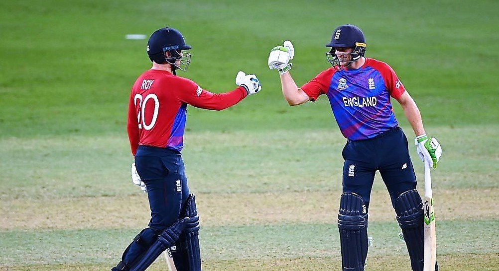 ಉತ್ತರವಾಗಿ ಬ್ಯಾಟಿಂಗ್ ಆರಂಭಿಸಿದ ಇಂಗ್ಲೆಂಡ್ ಹೊಡೆಬಡಿಯ ಆಟಕ್ಕೆ ಶುರುವಿಟ್ಟುಕೊಂಡು ಓವರಿಗೆ ತಲಾ 10ರ ಸರಾಸರಿಯಲ್ಲಿ ಬ್ಯಾಟ್ ಬೀಸುತ್ತ ಸಾಗಿತು. ಬಿರುಗಾಳಿಯ ಆಟವಾಡಿದ ಜೋಸ್ ಬಟ್ಲರ್ ಕೇವಲ 32 ಬಾಲುಗಳಿಂದ 71 ರನ್ ಬಾರಿಸಿದರು. ಇದರಲ್ಲಿ 5 ಬೌಂಡರಿ, 5 ಭರ್ಜರಿ ಸಿಕ್ಸರ್ ಒಳಗೊಂಡಿತ್ತು. ಉಳಿದಂತೆ ಜೇಸನ್ ರಾಯ್ 22, ಜಾನಿ ಬೈರ್ಸ್ಟೋ 16 ರನ್ ಗಳಿಸಿದರು.